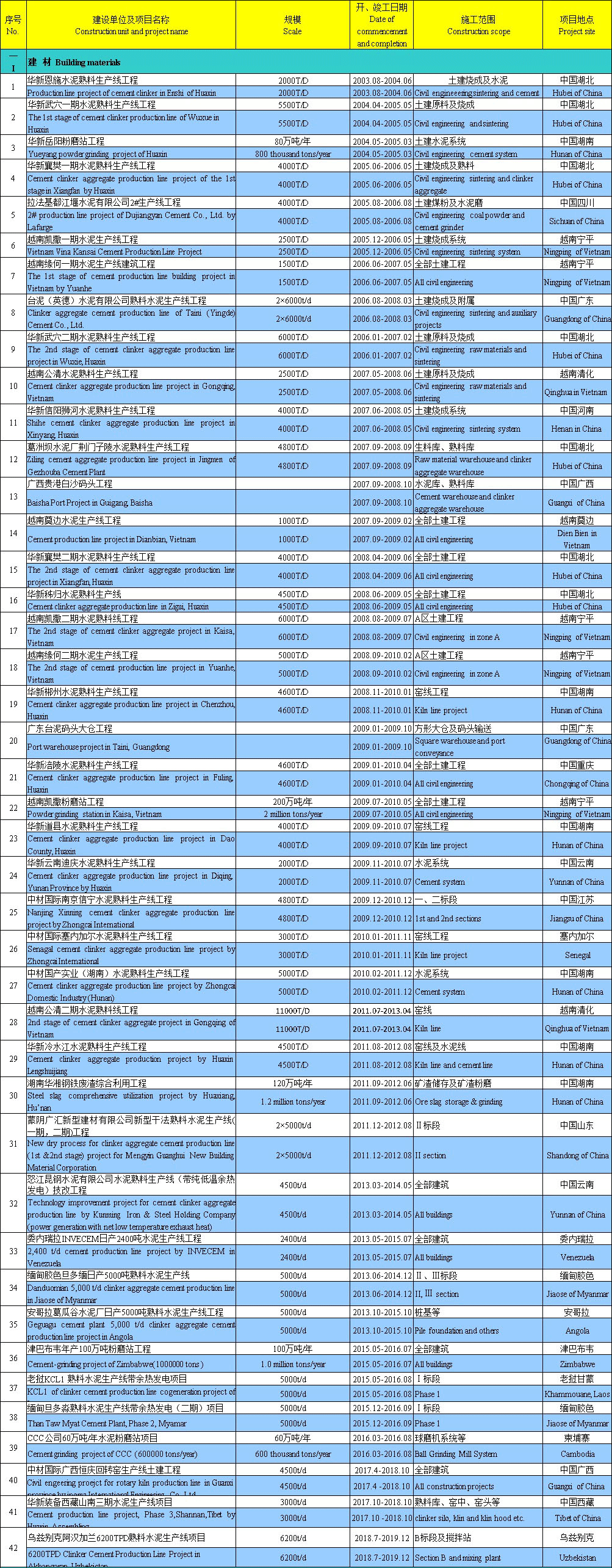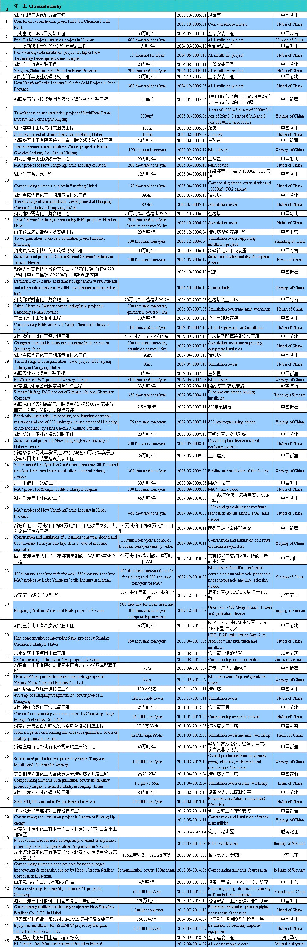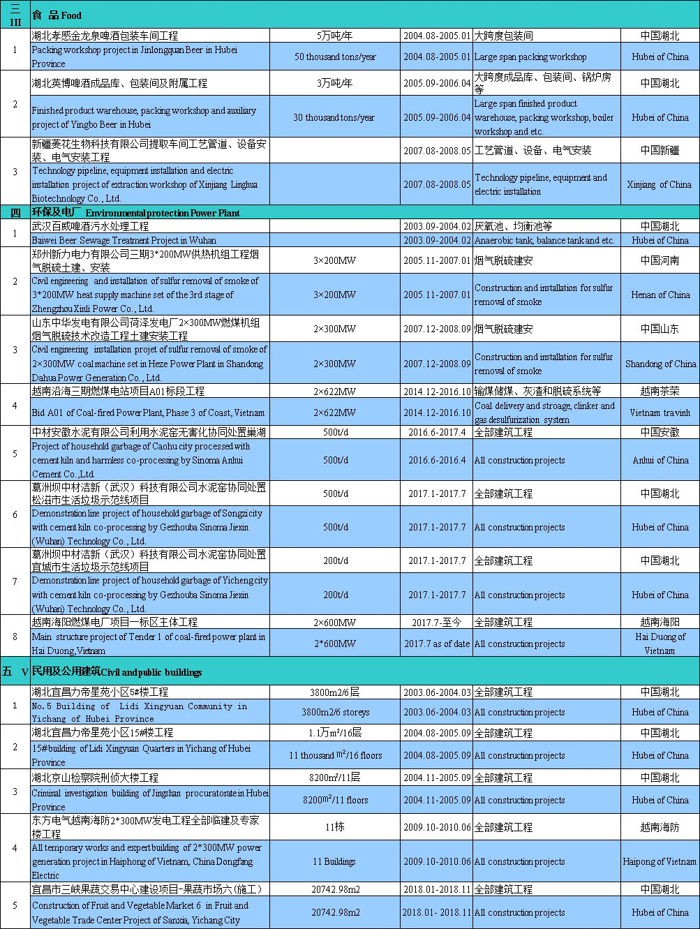 List of projects undertaken by Hubei Huasheng Construction Co., Ltd. in the past years